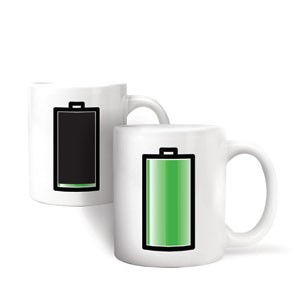 Šálek který se mění podle teploty. Když je nápoj horký, baterie je plná a když vystydne, tak zase prázdná. Podle baterie přesně víte, jak jste na tom. Praktický a velmi originální doplněk do kuchyně.