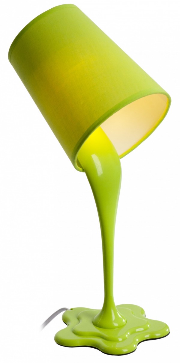 Lampička BALVI Splash zelená - unikátní plastová lampička designérského studia BALVIve tvaru kbelíku levitujícího nad rozlitou hmotou. Zelená barva, materiál plast, rozměry: 40 x 14 x 19 cm